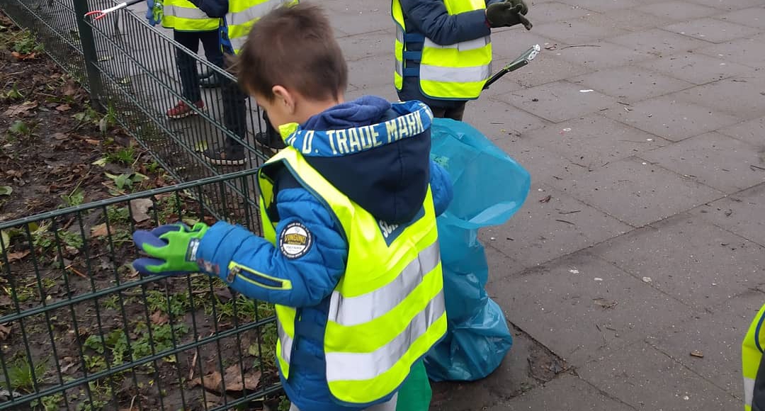 De kleuters van groep 1/2 hadden als thema afval en als onderdeel daarvan gingen ze ook op pad om zwerfafval op te ruimen.