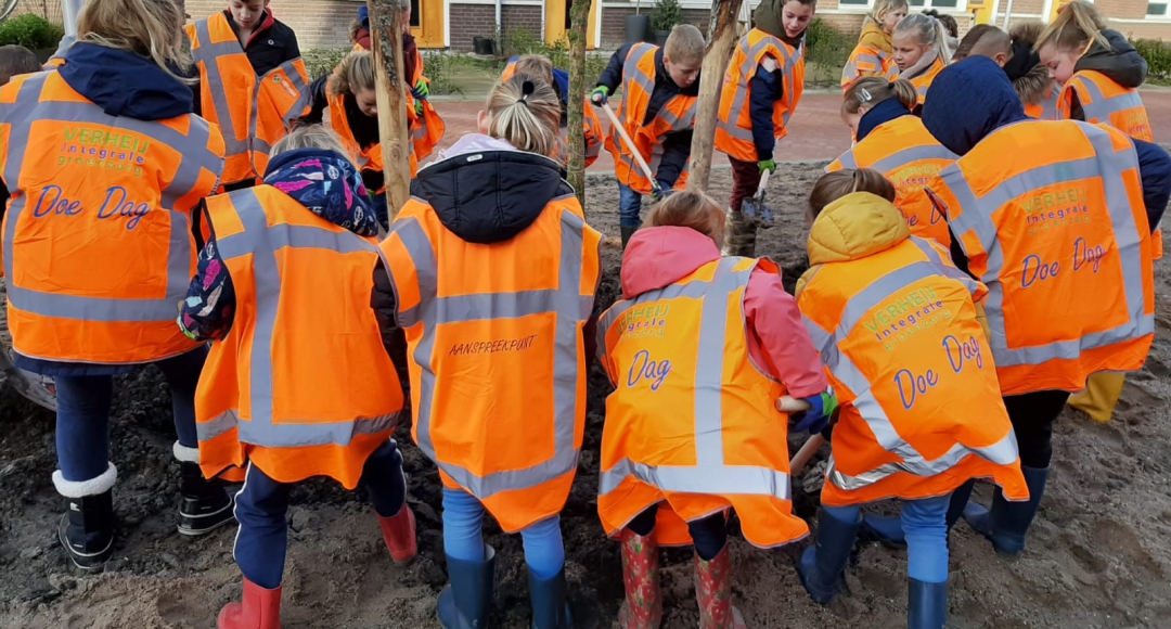 Leerlingen Rehobothschool Moerkapelle helpen mee bij planten bomen